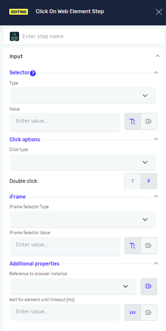 - If the primary selector fails and additional selectors are defined, the step will automatically try the additional selectors in order.