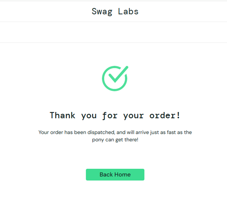 Verify that the checkout was successful by checking the text message (Your order has been dispatched, and will arrive just as fast as the pony can get there!“.