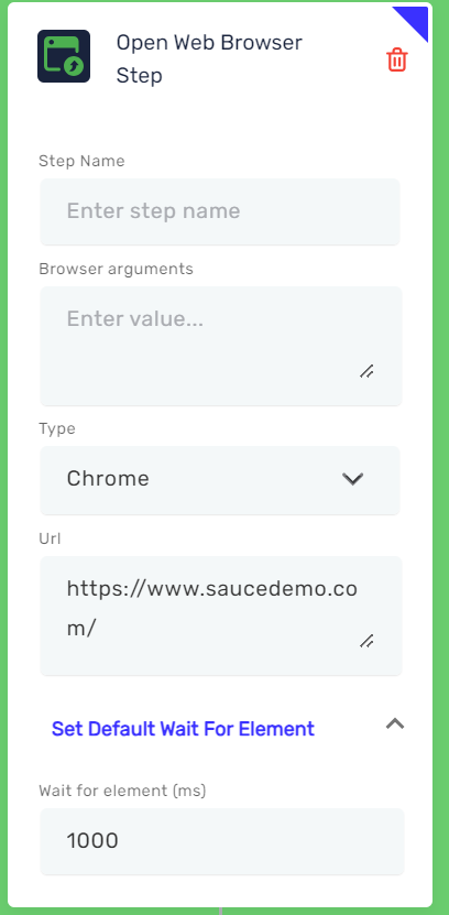 A new option allows you to define a default timeout for all steps within the same group, improving consistency and reducing manual configuration. The only exception is the first step after the Open Web Browser step, which retains a higher timeout value to account for page load time.