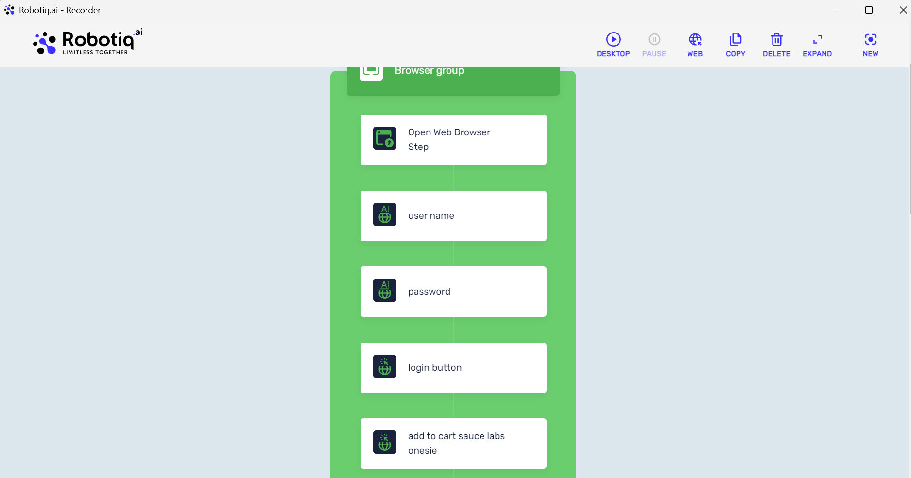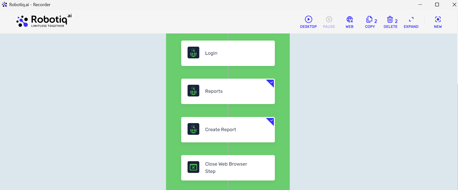 You can now select and copy/delete specific steps directly from the recorder. Step selection works the same way as in the process editor, using the top-right corner of each step. If no steps are selected, the copy action will include the entire recorded process flow.