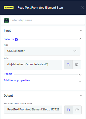 When using Read Text From Web or Read Attribute From Web, a variable is now automatically assigned to store the result. You can rename this variable or replace it with an existing one, depending on your workflow needs.