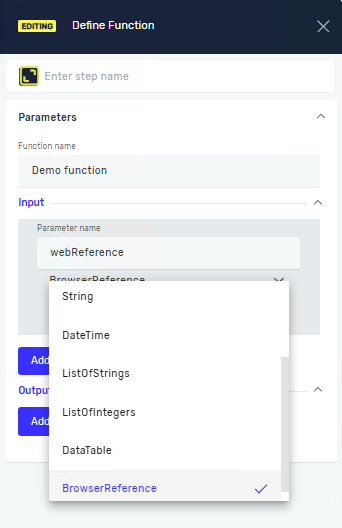 We introduced a dedicated variable type for browser driver references. Driver references can now be reused across steps, accessed from Script steps, and passed as parameters into functions, making web automations more flexible and reusable.
