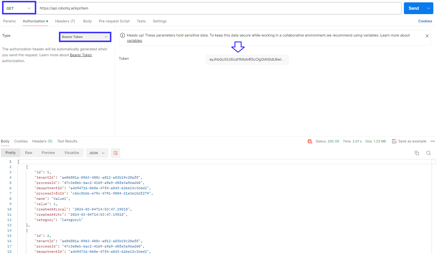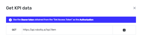 For API for accessing KPI data, click the KPI request button and copy that data to the API application.