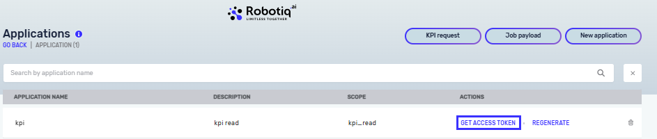 - Click the GET ACCESS TOKEN button next to your application.