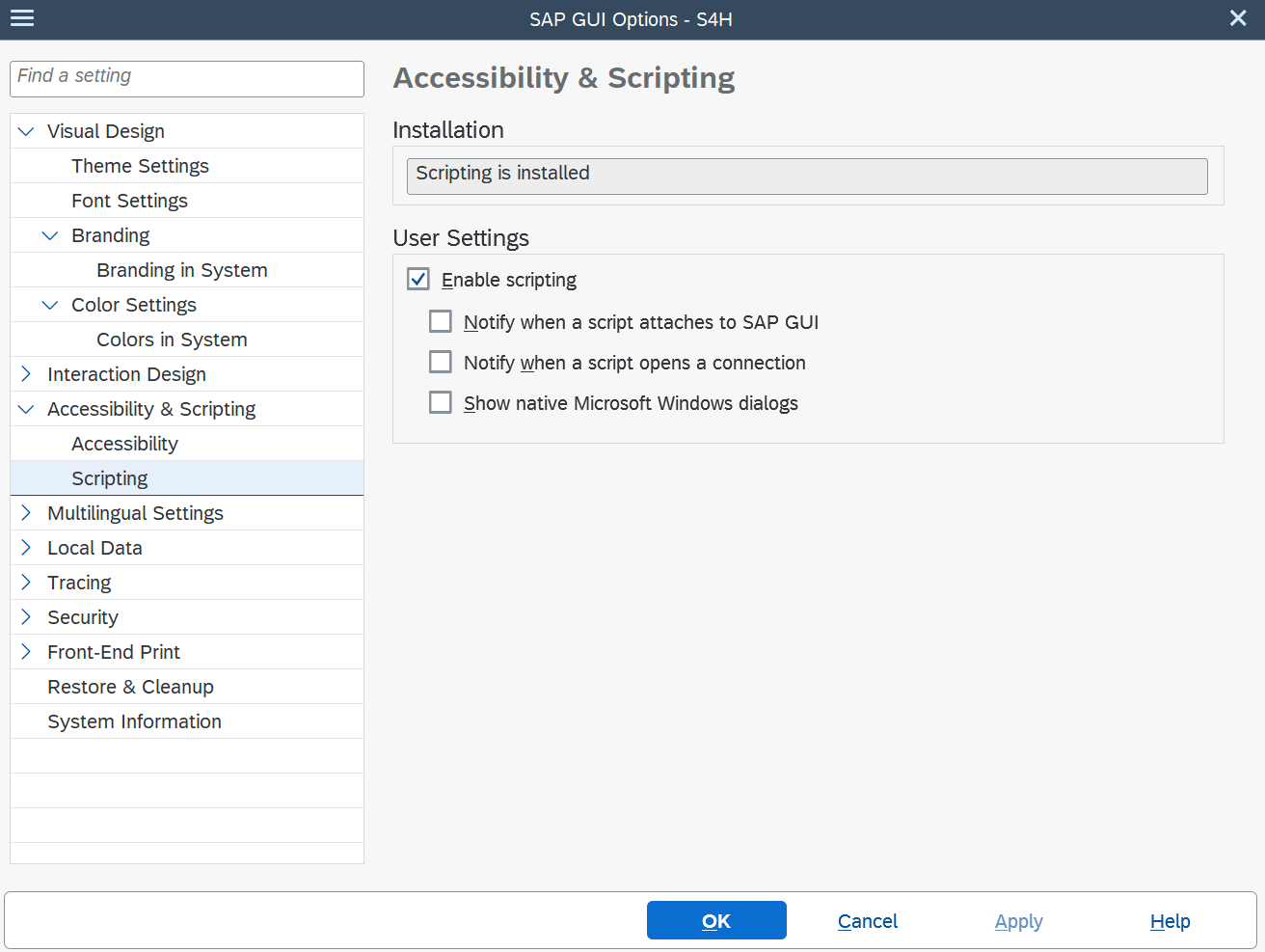 After completing these steps, SAP Scripting is ready to be used.